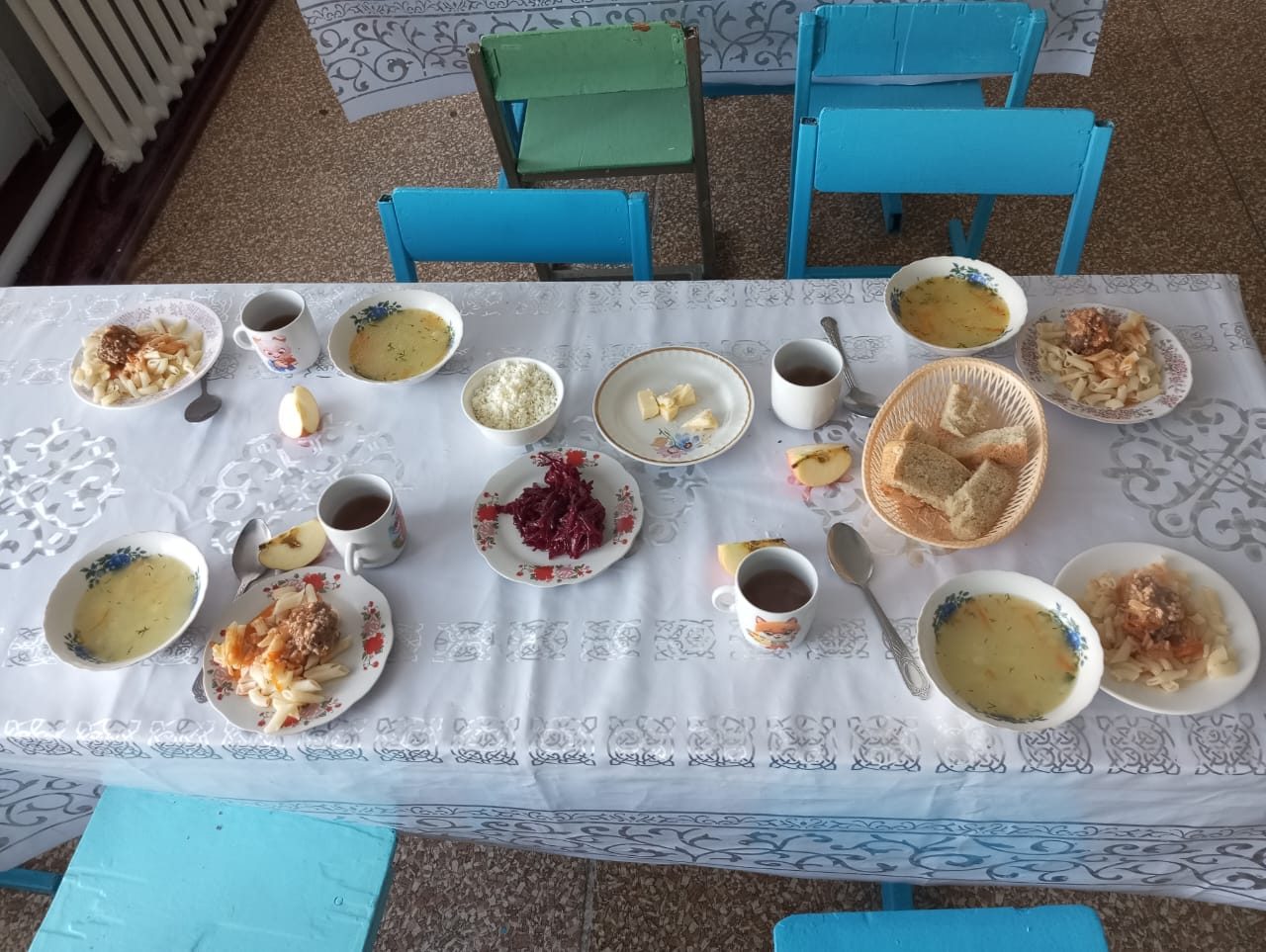 Салат свекольный 60 100 Суп рисовый 200 250 Макароны отварные 100 100 Тефтели мясные 80 100 Компот 200 200 Яблоко 100 100 Творог 100 100 Хлеб с маслом 35/20 35/20
