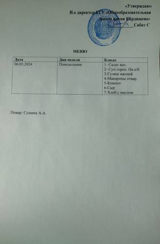 Ас мәзірі және фото 06/05/24