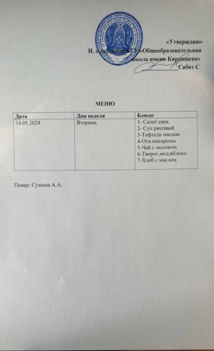 Ас мәзірі және фото 14/05/24