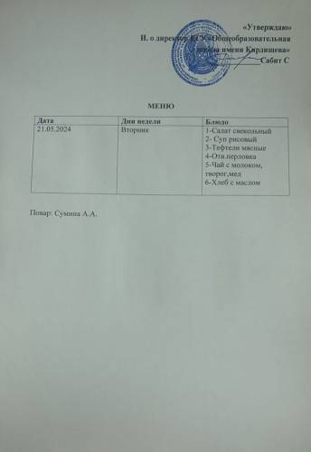 Ас мәзірі және фото 21/05/24