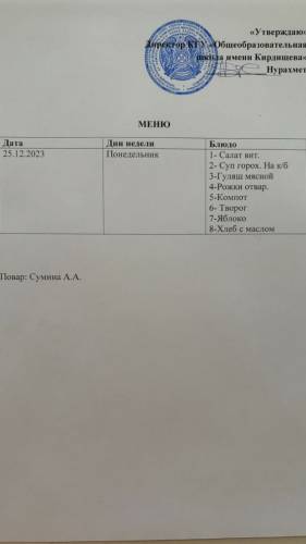 Ас мәзірі және фото 25/12/23
