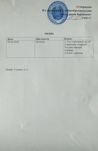 Ас мәзірі және фото 26/04/24
