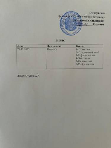 Ас мәзірі және фото 28/11/23