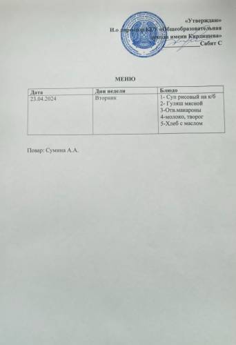 Ас мәзірі және фото 23/04/24