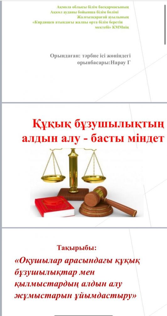 17.01.2025ж Директордың ТІМ Нарау Гульмерей "Құқық бұзушылықтың алдын алу" тақырыбында аудандық семинарда баяндама оқыды