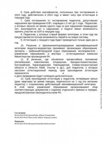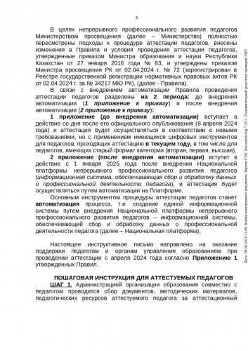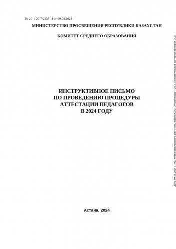 2024 жылы мұғалімдерді аттестаттау рәсімін өткізу туралы нұсқау хат